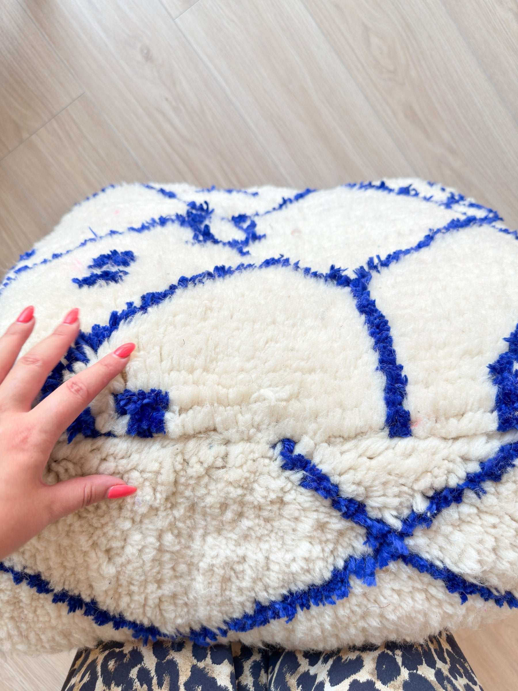 Our Moroccan poufs measure approximately 60x60cm. Due to their handcrafted nature, slight variations in dimensions may occur. Sold empty, they give you the freedom to select the filling of your choice, ensuring personalized comfort. Crafted from premium wool, our Azilal pouf is built for durability, promising to serve you faithfully for years to come.